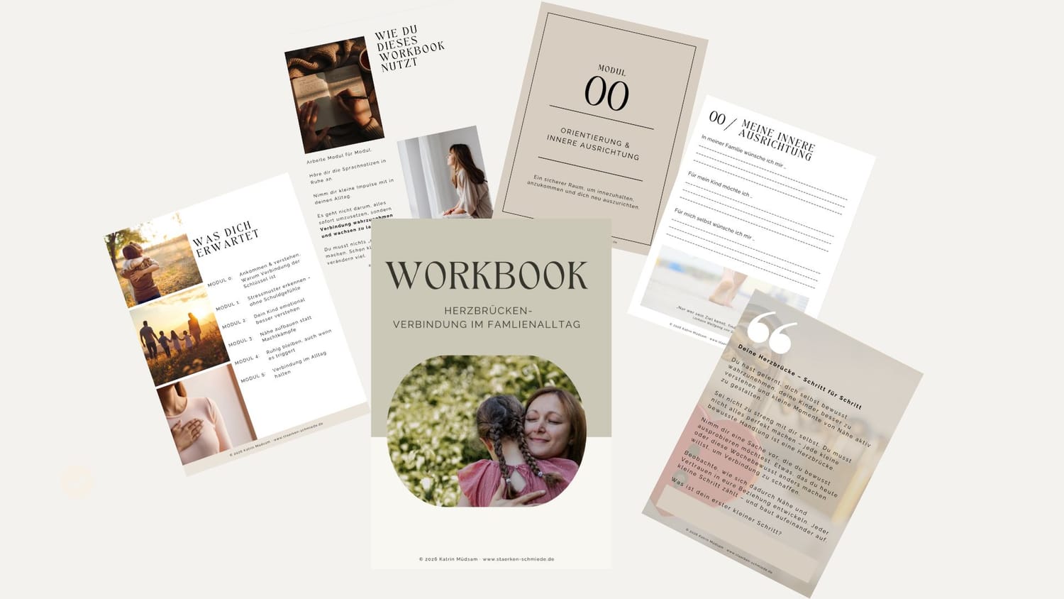 Die sechs Module sind bewusst kurz gehalten – jede Einheit dauert nur 5 bis 10 Minuten. Du entscheidest selbst, wie viel Zeit du zusätzlich für Nachspüren und Reflektieren investieren möchtest. So passt der Workshop auch in einen vollen Familienalltag, ohne Druck, ohne Stress.