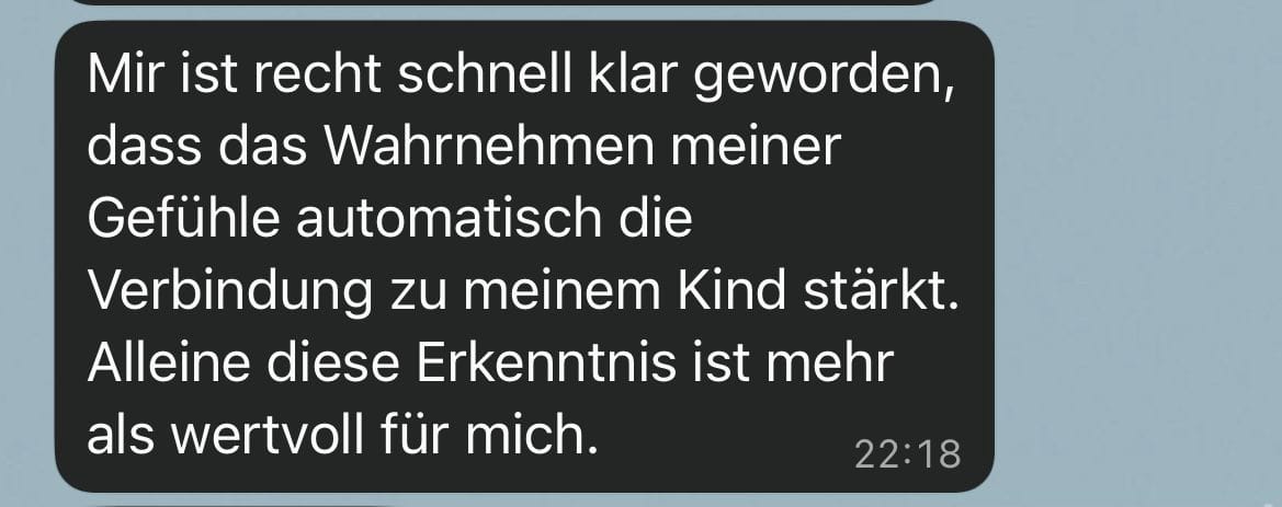 Du wirst Schritt für Schritt begleitet und entwickelst mehr innere Ruhe, Sicherheit und Klarheit im Umgang mit deinem Kind.